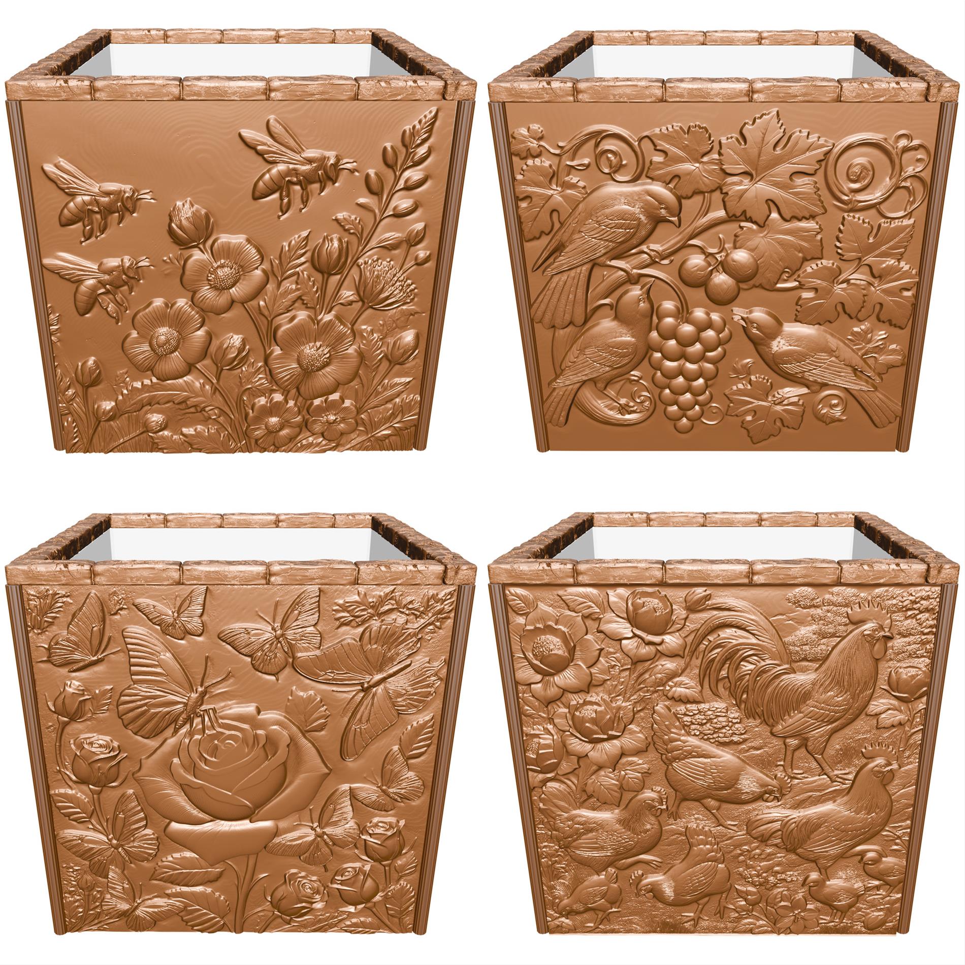 3D rölyef kaplama saksılar, topraklı canlı bitki dikimi ile kullanılabileceği gibi yapay çiçeklerle dekoratif bir süs olarak da kullanılabilir.